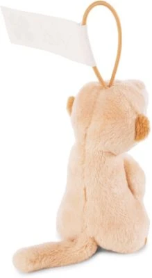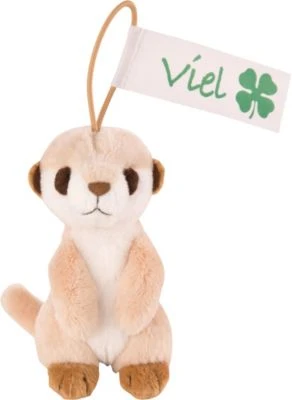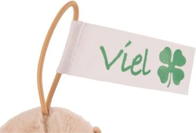 Kuschelig weicher Anhänger mit elastischer Schlaufe und einem kleinen Fähnchen auf dem „Viel Glück“ steht.