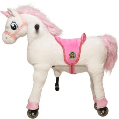 Mit diesem tollen Spielzeug geht der Traum vom Einhorn-Reiten in Erfüllung! Dieses kuschelweiche Einhorn „Melody“ bietet Ihrem kleinen Liebling einen bequemen Sitz, Stabilität durch Haltegriffe und jede Menge Freude! Besonders toll: werden die Fußstützen nach unten gedrückt, bewegt Melody sich nach vorn!