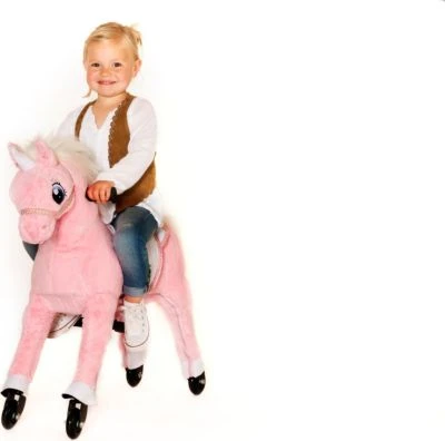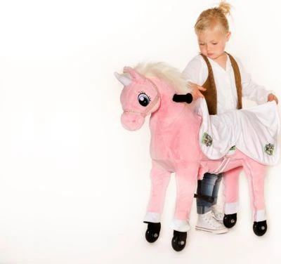 Mit diesem tollen Spielzeug geht der Traum vom Einhorn-Reiten in Erfüllung! Dieses kuschelweiche Einhorn „Rosalie“ bietet Ihrem kleinen Liebling einen bequemen Sitz, Stabilität durch Haltegriffe und jede Menge Freude! Besonders toll: werden die Fußstützen nach unten gedrückt, bewegt Rosalie sich nach vorn!