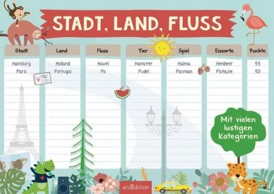 In diesem Block finden sich über 90 Vorlagen für den Spieleklassiker „Stadt, Land, Fluss“ – sowohl mit den klassischen Kategorien also auch mit ganz neuen, verrückten Rubriken! Es gibt 6 Spielvarianten mit zahlreichen Vorlagen sowie noch viele frei gestaltbare Seiten für die eigenen Ideen der Spieler.
