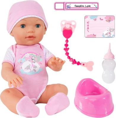 Piccolina Love ist eine süße Puppe, mit der Kinder dank der zahlreichen Funktionen immer wieder spielen möchten. Drückt man Piccolina Loves rechte Hand, sind niedliche Babygeräusche zu hören. Dabei blinzelt die Puppe mit den Augen. Beim Druck auf die linke Hand schließt sie die Augen und macht Schlafgeräusche. Geweckt wird sie durch erneutes Drücken der Hand. Kinder können ihr die Flasche geben, worauf sie den Mund bewegt und schmatzt. Anschließend kann man auf ihren Bauch drücken, damit sie ins Töpfchen macht. Außerdem kann sie herzhaft lachen und giggeln.