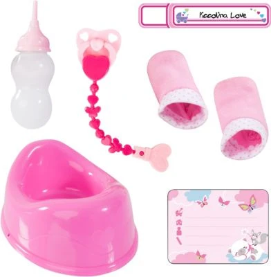 – ebenfalls im Set enthalten: Töpfchen, Schnuller mit passender Schnullerkette, Fläschchen und Geburtsurkunde