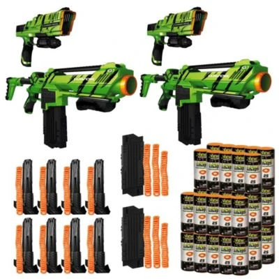 Komplettes SetBeinhaltet: 4 Blaster: 2x Hammerhead, 2x Havok, 10 Magazine für den schnellen wechsel, 40x 25-NRG MunitionInsgesamt 1466x NRG-GummigeschosseFliegt besonders schnell & präziseMunition WiedervervendbarUnschlagbare Preis-Leistung