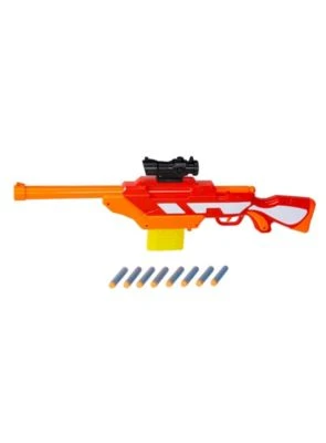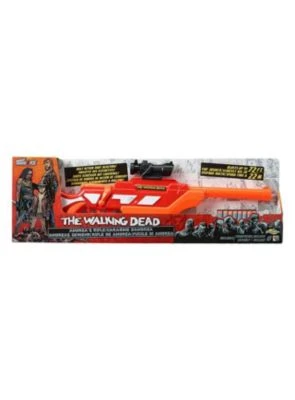 The Walking Dead – BuzzBee Andreas Gewehr mehrteiligein Blaster-Gewehr mit Magazinmit acht Dartsmit aufsteckbarem ZielfernrohrLänge: 72 cm