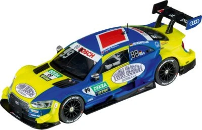 Traumwagen für Traumstrecken! Mit dem coolen Slot Car – Audi RS 5 DTM „M. Rockenfeller, No.99“ kommt ein Hingucker mit klarem Ziel: der Sieg. Mit dem großen Vorbild konnte der Ingolstädter Automobilkonzern dreimal in Folge, nämlich 2007, 2008 und 2009 die Fahrerwertung für sich entscheiden. 2017 schloss Audi mit dem RS5 die DTM-Saison mit 4 Audi-Piloten auf den ersten 4 Plätzen ab. Der erfahrene Mike Rockenfeller sitzt seit 2007 im Cockpit der DTM und gilt als einer der Stars der Tourenwagenmeisterschaft. Das coole Design ist ein Hingucker und wird auch die Konkurrenz beeindrucken. Das Slotcar ist individuell codierbar und hat eine digitale Steuerung.
