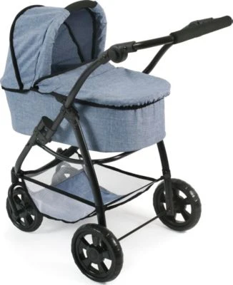 Der topmodische Kombi-Puppenwagen 3 in 1 „Emotion All in“ von CHIC 2000 gleicht den modernen Kinderwagen bis ins letzte Detail und wird so garantiert für viel Spielspaß sorgen! Der trendige Vierräder überzeugt mit seiner 3 in 1 Verwendungsmöglichkeit als Puppenwagen, Sportwagen, herausnehmbarer Wanne sowie einem separatem Autositz. Der Sportwagen ist mit einem 3-Punkt-Sicherheitsgurt ausgestattet und kann sowohl in Fahrtrichtung wie auch mit Blick zu den Puppeneltern verwendet werden. Die Winddecke der Babywanne dient gleichzeitig als Beindecke für den Sportsitz. Kurven fahren wird zum Kinderspiel aufgrund der schwenkbaren Vorderräder. Der Sportsitz und die Babywanne können beidseitig aufgesteckt werden, sowohl in Fahrtrichtung als auch mit Blick zum spielenden Kind. Für noch leichteren Transport kann der Puppenwagen zudem im Handumdrehen zusammengeklappt und sehr stark komprimiert werden. In dem praktischen Gepäcknetz kann Puppenzubehör und Proviant für die Puppe und die Puppeneltern eingepackt werden. Jetzt kann der Spaziergang mit Puppe und Co. beginnen!