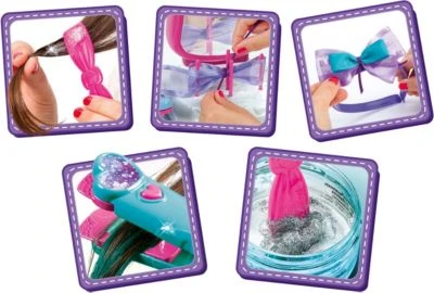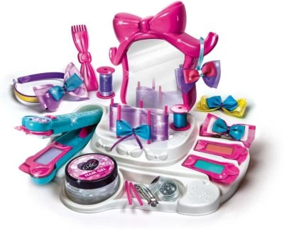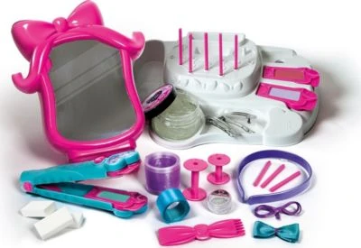 Dieses Schönheitsset der Marke Clementoni wird Ihnen helfen die schönsten Frisuren zu kreieren. Im Set enthalten ist ein Spiegel, eine Haar-Farbpalette und bunte Kreidetäfelchen, um unterschiedliche Farben zu erschaffen. Weiterhin sind Clips und eine Accessoire-Ablage enthalten. Durch die Mulden in der Ablage können ganz einfach Schleifen hergestellt werden, die an die Clips oder an den Haarbändern befestigt werden können. Das Set stimuliert das handwerkliche Geschick bei Kindern.