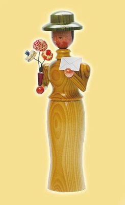 Diese elegante Klapperpuppe hat eine Größe von 15 cm. Die Madame hat eine gelbe Bluse und einen gelben Rock an. In der linken Hand hält sie einen Brief und mit der rechten Hand hält sie einen Blumenstrauß. Auf dem Kopf trägt sie einen grünen Hut. Die Klapperpuppe besitzt einen holen Körper in dem sich kleine Kugeln befinden, diese durch schütteln der Figur zu klappern beginnen. Die Figur ist komplett aus Holz gefertigt und bunt gestaltet. Alles wird in verschiedenen Arbeitsschritten komplett in Seiffen in einem Familienbetrieb mit langer Tradition gefertigt- Volkskunst aus dem Erzgebirge und die filigrane Holzverarbeitung vereinigen sich in diesem schönen Produkt das im Herzen des Erzgebirges hergestellt wird- Klapperpuppe Die Gratulantin Höhe 15 cm- Gönnen Sie sich mit dieser Klapperpuppe ein besonders schönes Stück Erzgebirge für Ihr Zuhause- Holen Sie sich ein besonders schönes Stück Tradition in Ihr Heim oder ins Büro- Lieferumfang: 1 Klapperpuppe verpackt im stabilen Karton- Höhe= 15cm