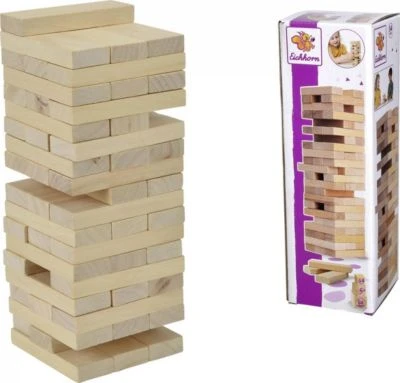 Spannende Spiele können so einfach sein – genauso wie dieses lustige Wackelturm-Spiel. Zunächst werden je drei der Holzsteine nebeneinander gelegt und so ein Turm gebaut. Nach und nach muss nun jeweils ein Spieler einen Stein herausziehen und oben auflegen. Doch Vorsicht: Wer den Turm zum Einstürzen bringt, hat verloren! Sieger ist hingegen, wer als letztes einen Stein hinauslösen und oben auflegen konnte, ohne ein Einstürzen des Turms zu verursachen. Immer wieder neue Spielmöglichkeiten sorgen für Spaß und Abwechslung!