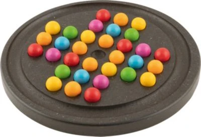 Ein Solitärspiel ganz im Sinne der Spielfreude und Vielfalt. Die Holzkugeln sind hochwertig farbig lasiert und bilden zum anthrazitfarbenen Spielbrett aus strapazierfähigem MDF einen sehr effektvollen Kontrast. Als äußerst praktisch und funktional erweist sich beim Spielen auch die Ablagerinne für die hoffentlich sehr zahlreichen Kugeln.Dekoratives Design verspricht auch Erwachsenen großen Spielspaß und bringt die „Grauen Zellen“ auf Trab.Solitär ist ein Brettspiel für einen Spieler. Man muss nacheinander die Kugeln entfernen, indem man sie in waagerechter oder senkrechter Richtung überspringt. Am Ende darf nur eine Kugel in der Mitte übrig bleiben. Das Strategiespiel fordert immer zu neuen Partien heraus. Auch schon versucht? Ein unterhaltsames Strategiespiel, welches zu immer neuen Partien herausfordert!
