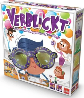 Verblickt, jetzt mit neuen einfacheren Begriffen. Bei diesem Partyspiel blickt keiner richtig durch: Die Spieler tragen hier eine verrückte Brille, die den Blick total verzerrt. Nun müssen sie Begriffe zeichnen – die Motive unfall- und lachfrei aufs Papier zu bringen, ist dabei fast unmöglich. Ein Würfelwurf entscheidet, welcher Begriff auf der Aufgabenkarte gemalt wird. Die Karte zeigt auch, welche der drei Brillenstärken der Spieler beim Zeichnen tragen muss. Grün, Gelb oder Blau – mit jeder Farbe steigt der Verzerrungsgrad. Verblickt sorgt für jede Menge Spaß und witzige Kunstwerke.