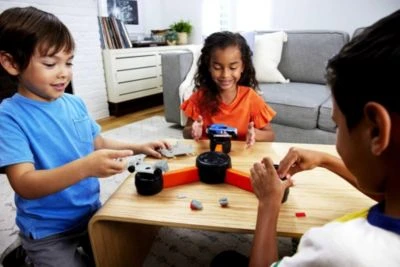 Wer ist am geschicktesten und auch am schnellsten mit dem Zusammenbau des individuellen Hot Wheels Fahrzeugs? Hier können bis zu 3 Auto-Werker gegeneinander antreten. Die vielen einzelnen Teile können unterschiedlich zusammengesetzt werden. Wer sein Fahrzeug fertig hat, stellt es auf den Reifen und drückt das Rad in der Mitte. Mit dem Spieleset von Mattel kommt Spielespaß für die ganze Familie!