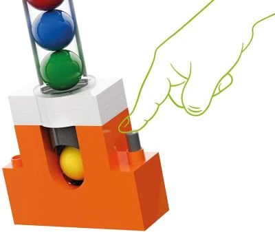 Mit der raffinierten Technik der Kugelpumpe ist es endlich möglich, die Kugeln nach rasanter Abfahrt auf direktem Wege wieder an den Start der Bahn zu befördern.Beobachte durch die transparenten Rohre, wie deine bunten Kugeln immer höher gepumpt werden und direkt in die nächste Runde starten.