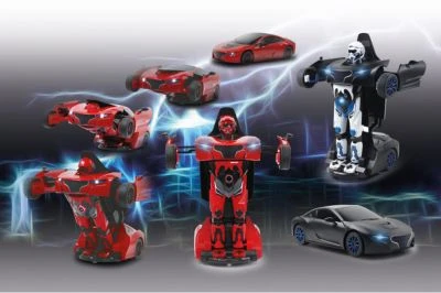 Auf Knopfdruck an der Fernbedienung verwandelt sich der Sportwagen in einen Roboter.