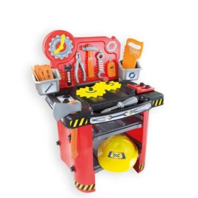 Wer möchte nicht gern ein kleiner Handwerker sein? Mit dieser Spielzeug Werkbank von Mochtoys kann Ihr Kind schön mithelfen, wenn Sie selbst mal wieder etwas zu werkeln haben. Es hat sein eigenes Kinderwerkzeug, wodurch Sie sich voll und ganz auf sich und Ihr Vorhaben konzentrieren können, ohne Angst zu haben, es könne sich verletzen. Die Werkbank für Ihr Kind ist aus Kunststoff und kann so auch leicht zum Ort des Geschehens transportiert werden. Sie hält neben Schraubenschlüssel, Hammer und Helm auch eine Säge, eine Uhr und eine Axt bereit. Mit dem Kinderwerkzeug trainiert Ihr Kind seine grob- und feinmotorischen Fähigkeiten und hat dabei sicher jede Menge Spaß.