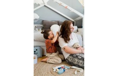 Das Kindsgut Friseur-Set aus Holz ist perfekt für kleine Friseurinnen und Friseure. Das 6-teilige Set lädt zu ausgiebigen Rollenspielen ein und sorgt mit seiner hochwertigen Qualität für langlebigen Spielspaß. Das Friseur-Set aus Holz ist in dezenten Farben und einem niedlichen unisex Design gehalten – und besteht aus den folgenden Einzelteilen: Föhn, Rasierer, Glätteeisen, Kamm, Schere und Gürteltasche. So können die Holzprodukte, ganz wie beim echten Friseur, direkt am Körper getragen werden und die Kleinen haben ihr Equipment immer griffbereit. Die Größe der Gürteltasche kann dabei altersgerecht mit einem Klettverschluss angepasst werden. Die kindgerecht gestalteten Einzelteile lassen sich durch ihr leichtes Gewicht einfach benutzen und können kreativ in verschiedene Spielsituationen integriert werden. Dabei fördert das Rollenspiel ganz spielerisch Kreativität und soziale Kompetenzen.