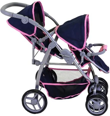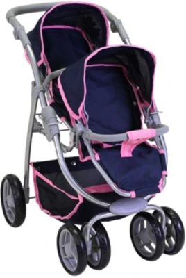 Mit dem praktischen Zwillingspuppenwagen „Milo“ von KnorrToys können Kinder gleich mit zwei ihrer Puppen eine tolle Spazierfahrt machen. Ausgestattet ist das schicke Modell mit einem verstellbaren Verdeck, einem Einkaufskorb sowie zwei Sitzen mit Anschnallgurt. Für einen angenehmen Fahrkomfort sorgt die Softummantelung des höhenverstellbaren Schiebers.