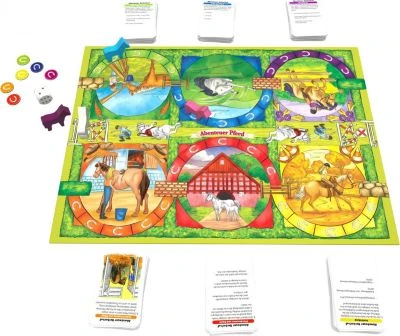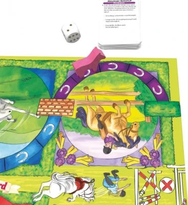 Das Quizspiel „Abenteuer Pferd“ ist perfekt für alle, die Pferde lieben. Hiermit können Pferdefans ihr Wissen testen und Neues lernen. jeder der sechs Bereiche stellt eine Kategorie wie zum Beispiel Rassen und Zucht oder Pferdesport dar. Nach dem Würfeln und Bewegen der Figur wird eine Frage aus der entsprechenden Kategorie beantwortet. Wer als erstes sein Wissen aus vier Kategorien bewiesen hat, gewinnt das Spiel.