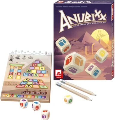 Mit dem „Anubixx“-Spiel ist lustiger Spiel-Spaß garantiert! Hier kann man riesige Bauwerke errichten und niemand muss warten, denn einer würfelt und alle bauen auf. Wenn die Würfel anders fallen als erhofft, retten die Spieler sich in den Steinbruch. Wer den Überblick behält und seine Steine nicht verschwendet, erlangt die Gunst des Pharaos und gewinnt das Spiel!