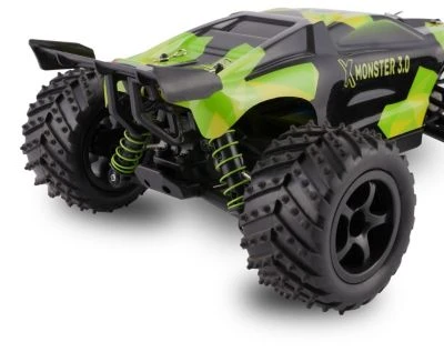 Der ferngesteuerte Monster Truck Overmax X-Monster 3.0 lässt keine Wünsche in Sachen Fahrspaß offen. Er fährt unglaublich schnelle 45 km/h auf gerader Fahrbahn, kann sich aber auch aufgrund seines Allradantriebs und der guten 4 von einander unabhängigen Stoßdämpfern problemlos durch wildes Gelände kämpfen. Die Reichweite der Fernbedienung misst gute 100 Meter, so dass man einen unglaublich weiten Fahrradius hat! Durch den zweiten mitgelieferten Akku kann man 2 x 20 Minuten am Stück fahren.