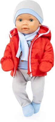 BAYER Kleider Für Puppen 33-38 Cm: 3-tlg. Set – Hose, Oberteil, Mütze, Rosa/rot/weiß