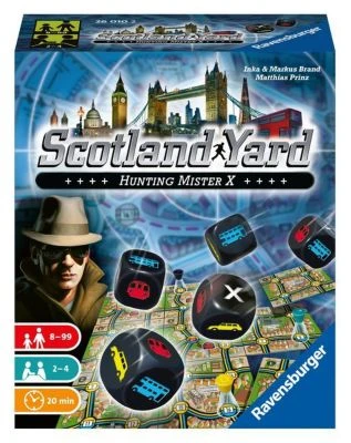 Mister X macht London unsicher! Diesmal startet ihr die rasante Verfolgungsjagd auf Mister X mit Hilfe von Würfeln. Taxi, Underground oder doch Bus?? Mal bekommt ihr das nötige Ticket, mal aber auch nicht. Gemeinsam seid ihr stark und kommt Mister X auf die Schliche. Stimmt euch ab und lasst ihm keinen Ausweg. Schnappt ihn euch, bevor er mit dem Hubschrauber auf Nimmerwiedersehen verschwindet!