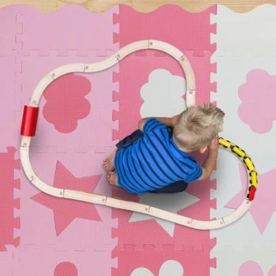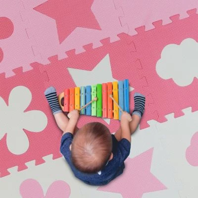 – Zweifarbige Kinderpuzzlematte mit Sternen, Wolken und Blumen