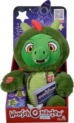 Das WunschOnauten Kuscheltier Rico Der Drache ist ein super Zuhörer und plüschiger Gefährte. Kinder können ihm ihre Wünsche anvertrauen, indem sie die Hand des Kuscheltieres gedrückt halten und den eigenen Wunsch aussprechen. Durch Drücken auf das Logo auf der Brust kann der Wunsch anschließend von den Kindern selbst oder den Erwachsenen abgehört werden.