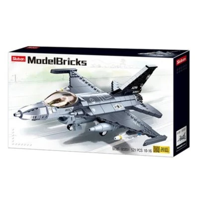 Der Düsenjet „Falcon Fighter“ ist aus der Model Bricks Reihe. Das Set besteht aus 521 Teilen.