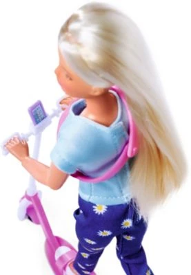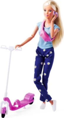 Dieses tolle Spielset „Steffi Love Scooter Fun“ aus dem Hause Simba sorgt für jede Menge lustigen Spielspaß! Steffi ist mit ihrem coolen Roller unterwegs zu ihren Freundinnen. Währenddessen macht sie ihr Handy in der Halterung fest und kann damit klasse Musik hören, telefonieren und mehr. Steffi trägt ein bequemes, stylisches Outfit, das aus einer Jeans im Gänseblümchendesign, einem T-Shirt, einer Bauchtasche und Sneakern besteht.