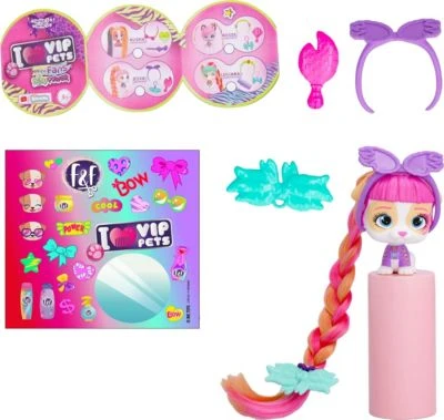 Hier kommen die niedlichen und bezaubernden Hundepuppen aus der VIP Pets Mini Fans Bow Power Kollektion zur beliebten YouTube-Serie. Die superlangen und bunten Haare sind perfekt zum Kämmen und immer wieder neu stylen. Jeder der niedlichen Charaktere begeistert kleine Fans ab 3 Jahren mit einer Überraschungskapsel mit Schleife. Die Schleife der Kapsel lässt sich abnehmen und als perfektes Styling-Accessoire verwenden. Und wem die Haare seines Mini-Hündchens immer noch nicht lang genug sind, der kann diese mit der enthaltenen bunten Haarverlängerung ganz einfach nochmals um 20 cm verlängern.