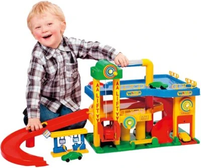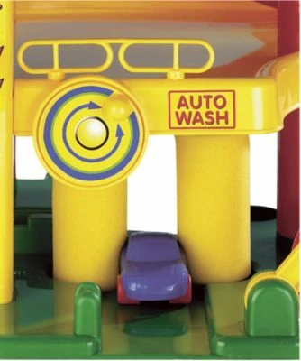 Deutschlands meist gekaufte Garage im farbenfrohen Design. Mit integriertem Tragegriff, Aufzug, Hebebühne, Waschanlage, seitlicher Abfahrt, Tankstelle und kleinen Fahrzeugen. Keine Montage erforderlich, sofort bespielbar!