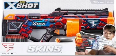 Mit X-Shot Skins bringst du das Gaming-Erlebnis in die reale Welt. Wähle deinen Blaster und zieh ins Battle. Mit dem automatisch rotierenden Lauf mit einer Kapazität von 14 Darts kannst du mehrere Ziele in einer Entfernung von bis zu 27 Metern treffen. Dank des einfach zu bedienenden Zündmechanismus lassen sich 14 Darts in Sekundenschnelle abfeuern. Der X-Shot Skins Last Stand Blaster kommt in 4 einzigartigen Skin-Designs zum Sammeln. Der Last Stand Blaster wird mit 16 Air Pocket Technology Schaumstoff-Darts geliefert. Kunststoff